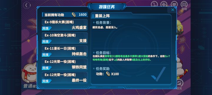 【困难图还没打,应该是一样的】1图压制点和boss点导驱≥1 轻母≥2 2图boss点航母≥2 轻母≥2 3图压制点战列≥1 轻巡≥1 boss点需先过一次外围战列≥1,驱逐≥1且为旗舰4图压制点最高航速≥40 轻母≥2航母≥3boss点最高航速≥40 轻母≥2驱逐≥35图压制点战列≥1且不为旗舰重巡≥1潜艇≥25图boss点(第一次打)战