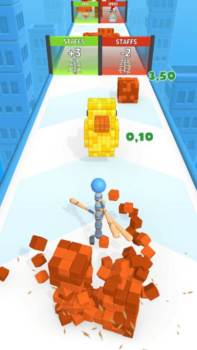 You can increase the number and distance of sticks by passing through the gates. It's fun to scatter cubes, keep that in mind.