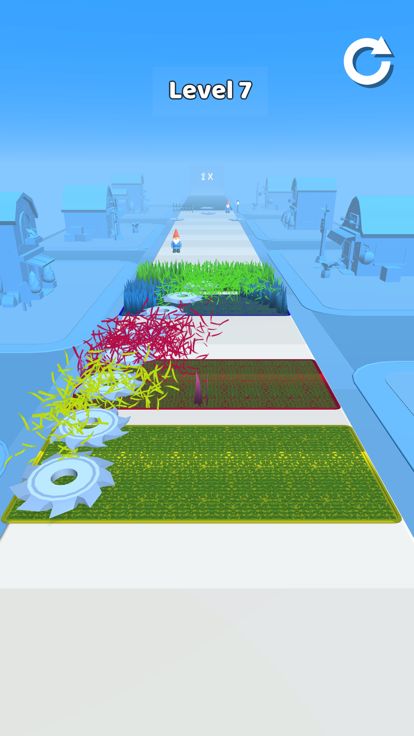 Collect discs and cut the grass. Be careful not to crash into obstacles and break discs.