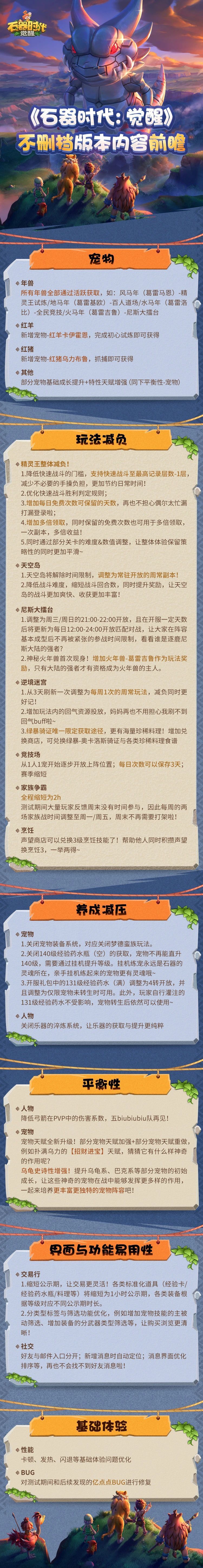 经典石器,重磅回归!《石器时代:觉醒》上线倒计时9天,玩法减负、养成减压、人物及宠物平衡性调整、界面与功能易用性等内容调整提前爆料!一起来看看不删档版本内容前瞻吧!