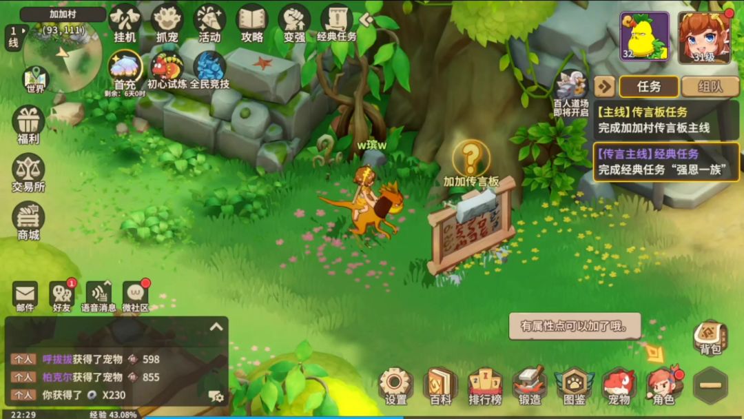 哈喽各位亲爱的小伙伴们大家好,今天给大家带来一些新人快速升级的途径以及资源获取的路径及方法,话不多说,下面让我们直接进入正题吧! 首先先来说一下新人快速升级的方式和途径,首先作为刚刚进入游戏的萌新玩家,我们最快也是最便捷的获取升级经验的方式就是做【主线任务】以及各种支线任务来获取游戏经验,同时我们在推主线的过程中除了升级之外,还可以获得宠物升级的资源以及用于商场购买道具的货币 ,同时也能在了解游戏