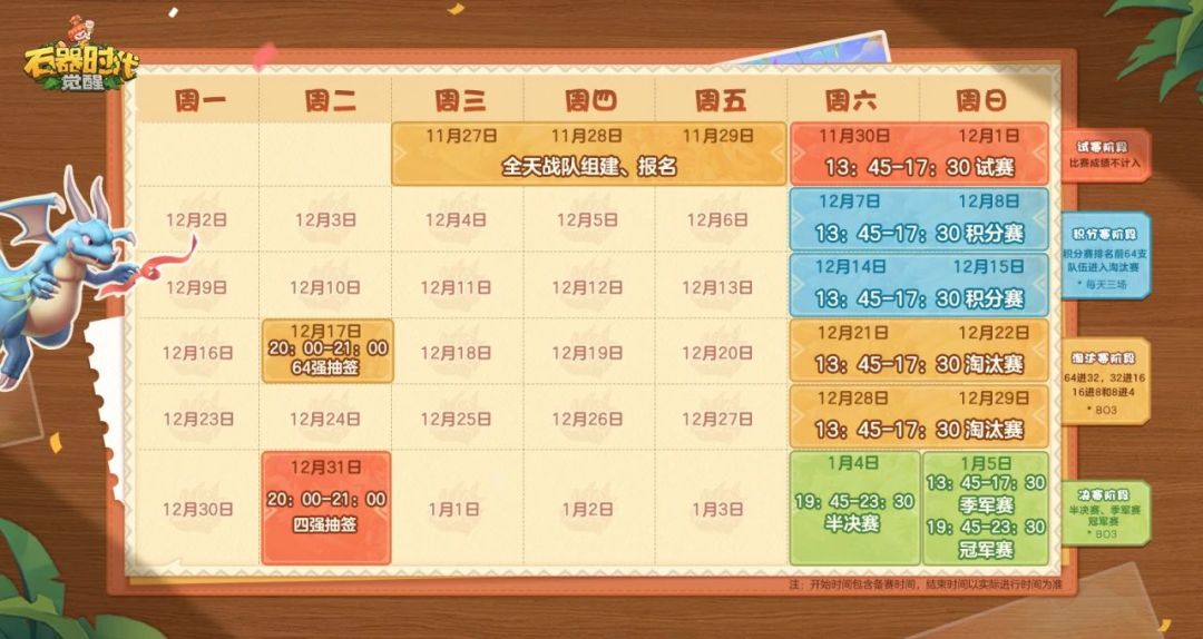 继刚刚过去的周末发布了《石器时代:觉醒》赛事品牌升级的内容后,全国大赛S2的最新动态也愈发备受关注。今天就和大家一起来了解S2赛事赛程、规则详情,以及奖励和荣誉设置情况。 ✦ 赛事体系与规则优化、赛事体验进一步升级 ✦ 丰厚的奖励力度、荣誉覆盖更广 ✦ 赛事周期缩短、赛季举办更高频 以下内容为前瞻爆料,最终以实际赛事进行情况为准。 S2赛程安排 全国大赛S2分为组队报名、试赛、积分赛、淘汰赛和决赛