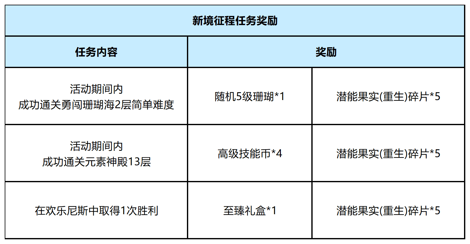 当新年的钟声即将敲响,节日的彩灯与欢庆的气息已悄然弥漫在尼斯大陆,意味着即将迎来一场暖心又燃情的狂欢盛宴!此前预告的【冬日庆典】活动中,许多玩家反馈【掉落翻倍狂欢】中的“元素神殿13层翻倍”和【手册加速成长】中的“元素神殿从通关13层可额外获得手册经验”,需要达到元素神殿13层的目标要求过高,因此对任务目标进行下调:①掉落翻倍中元素神殿从13层翻倍调整为12层翻倍;②手册加速中元素神殿从通关