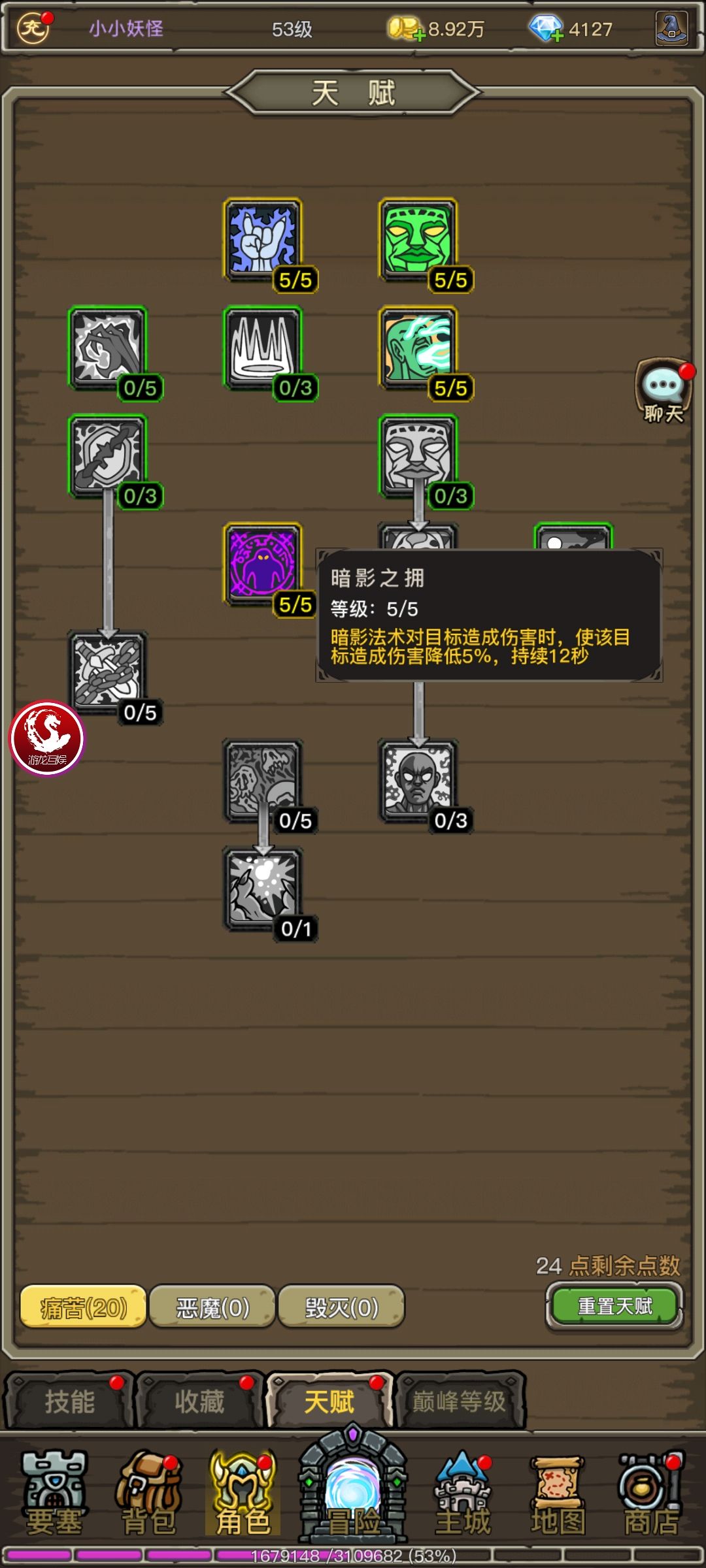 我把压箱底的最强天赋拿出来了,目的只有一个,让所有术士无敌。 痛苦20/恶魔31 痛苦加出来减伤5% 恶魔加出来减伤12% 合计减伤17% 三卡玩家搞一套5级减伤宝石,减伤14% 轻松搞个31%减伤。 橙装再洗练一下。+18%减伤 轻松搞个50%减伤。 带上两个抗性饰品,5种抗性各+26 装备洗练神圣抗性。总元素抗性轻松200+ 试问谁还打的动你? 还没你吸血多。