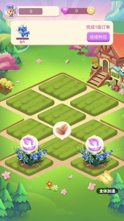 《鲜花小镇》是一款模拟种花的小游戏,可以解锁土地,选择花的品种,种植鲜花,还有加速功能,快来体验吧!