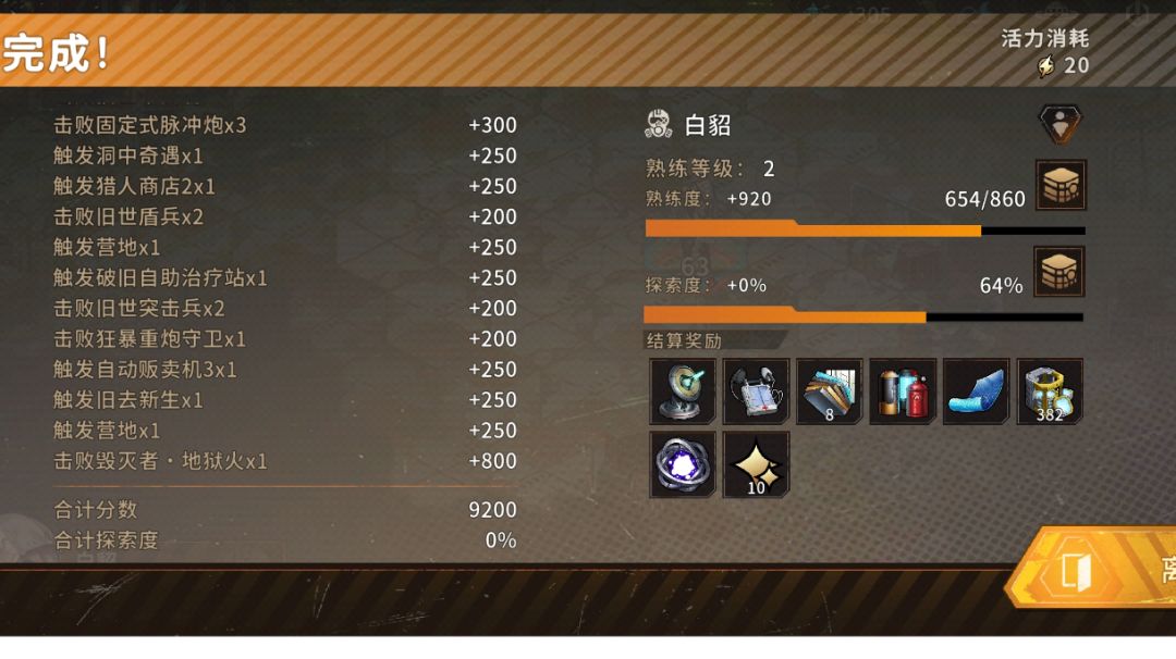 昨天玩了一小会,今早开打,第二张图过了 开局带拔枪,可惜没抽到枪手极意,个人喜欢带汽油和鹰眼[表情_斜眼笑]前期汽油群伤很舒服 遗物唯一真神:守财奴 其他遗物可以找加能量,射程和武器耐久的 基本上没怎么需要买卡,减减污染就好了 荒野猎人天赋我习惯带这个 通用天赋带移动、能量、伤害 暂时就那么多后续等我打完再说