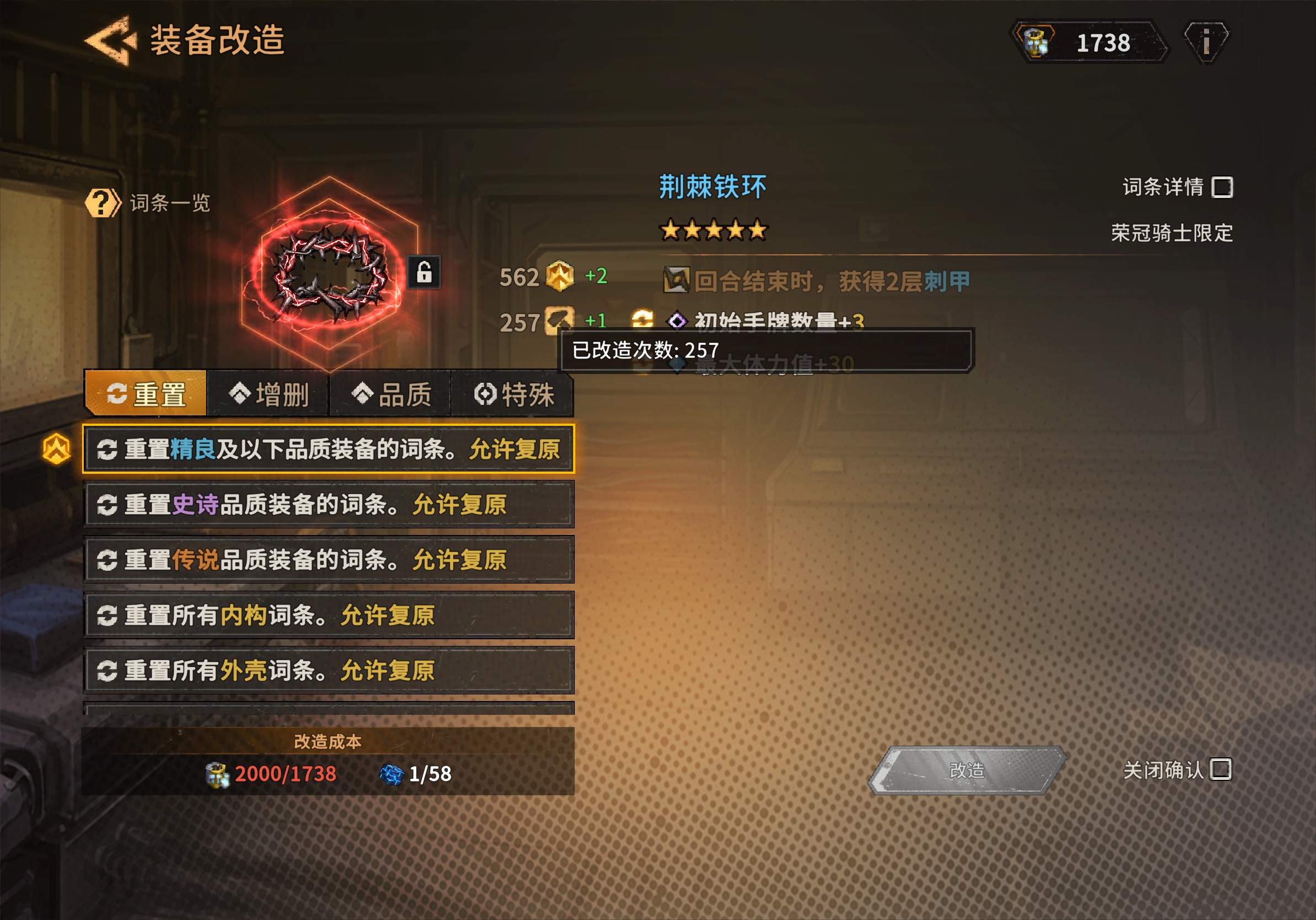 巴克的右手很能吃,主技能相当于自带了专用的维修组件,也算有半件危能溶液。捡到维修组件会让本就简单粗暴的战斗方式,更加简单粗暴,一锤一个小朋友。至于危能溶液,刷新武器呢。 利用高数值的武器,在一回合中进行多次斩杀,就是这英雄的玩法了。 当然,捡到动能回收刀柄后,巴克豪斯的盾也会越来越厚。配合永固牢门,也是能做到盾甲、刺甲与武器伤害,三个方面的均衡成长的。 (以上提到的,为遗物) 巴克的专卡,在消除手