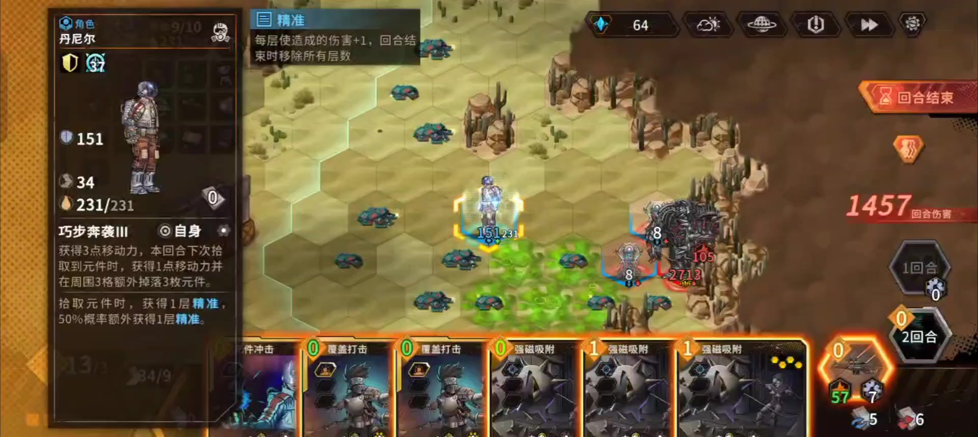 巴克的右手很能吃,主技能相当于自带了专用的维修组件,也算有半件危能溶液。捡到维修组件会让本就简单粗暴的战斗方式,更加简单粗暴,一锤一个小朋友。至于危能溶液,刷新武器呢。 利用高数值的武器,在一回合中进行多次斩杀,就是这英雄的玩法了。 当然,捡到动能回收刀柄后,巴克豪斯的盾也会越来越厚。配合永固牢门,也是能做到盾甲、刺甲与武器伤害,三个方面的均衡成长的。 (以上提到的,为遗物) 巴克的专卡,在消除手