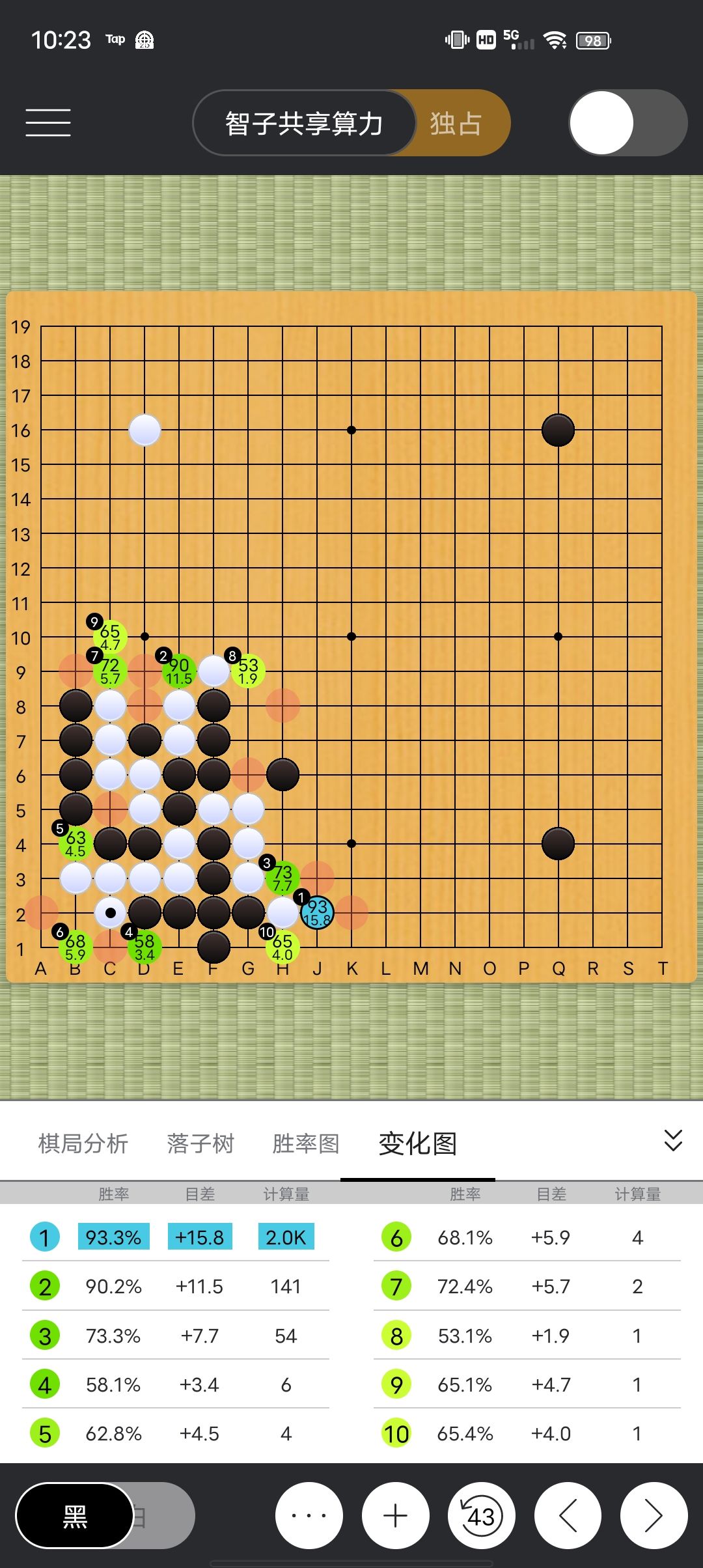 有新手不知道围棋要怎么计算?那我按步数拆分一下 1.第一步,挑出你直觉认为该下的多个选点 2.第二步,考虑下一手对面怎么下,也就是占在对面的角度重复第一步 3.第三步,再考虑自己下一步怎么下,也就是再重复第一步 补充:一开始你最想落子的位置一定会比其它选点算得多,最终下的每一步都要经过细细考虑 ai的计算与人类的方式都是一样的,区别只是ai算的更深,选点更广。ai每个选点算完后会比较双方目差,更加