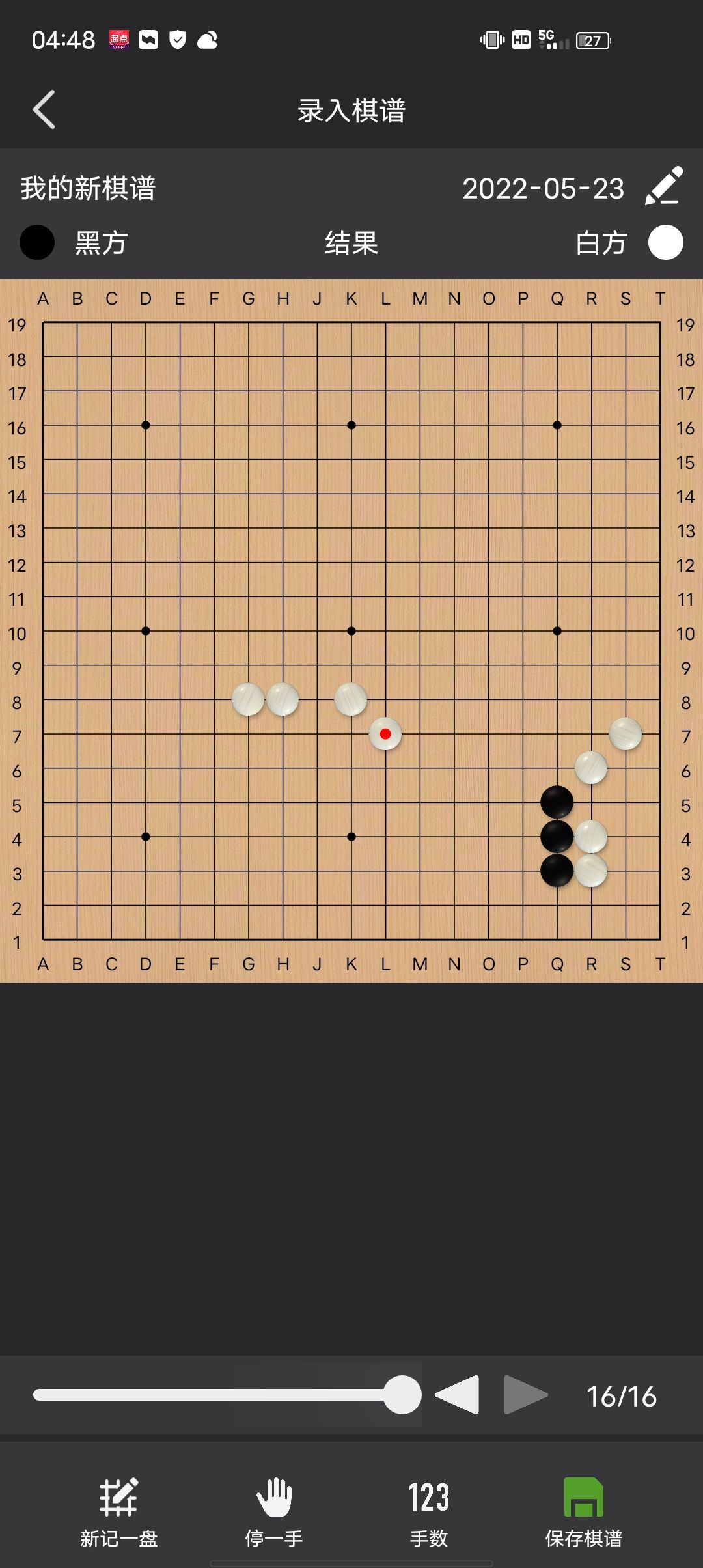 初级篇我将分为这些来写: 初级-定式 初级-布局 初级-技巧 初级-死活 初级-治孤 初级-进攻 初级-官子 初级-棋型 之后会有中级篇,高级篇 一 一补二 在角落的扳粘,可以考虑一下补断位置,能否一子起到两用的效果 二 二路夹 对方的棋有弱点,有时二路夹能成立 黑棋若立,白棋17o一冲黑棋4子就死了。最后白棋19p,白捡了一个劫。 不仅是官子,在中盘经常能二路夹,逼迫对方作出选择:是立还是接住。