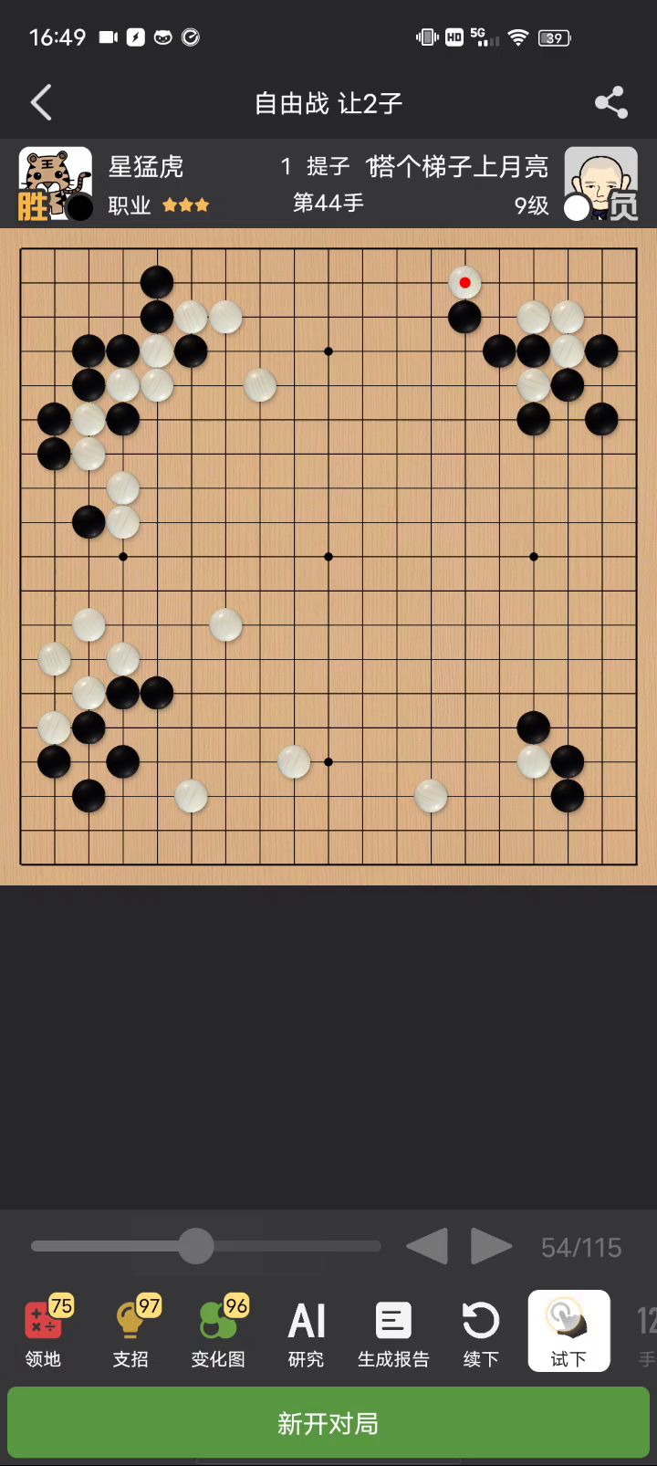 这可不是我下的啊,我可没这么高水准。白棋是alphago master ,这局是它对战全网高手60连胜对局之一。我最近都不下棋只看棋了,先把60局刷完再说
