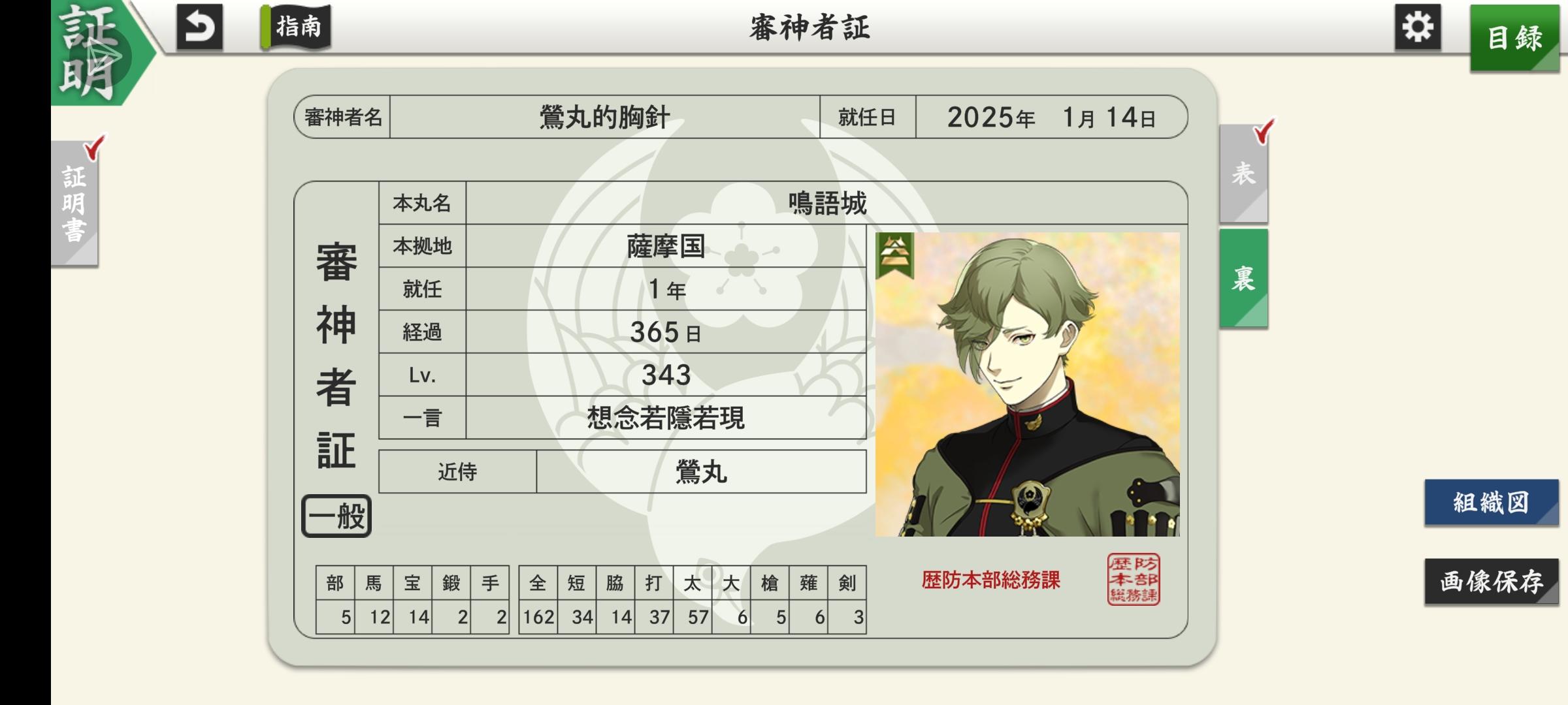 这里是武审薬師丸丹桜。一般的地方都是自称丹桜,自设没有好好搞过,不过也算是简单的有一个。曾经是国服相模国38楼的审神,现在虽然国服还在带着,但是主要已经把本丸转到日服了,日服开荒时间不久,用上了我毕生所肝总算是稳定下来,希望国服的刀刀们可以快点跟随我到达我们新的家中。日服我依旧是相模国,这个丹桜不怎么喜欢变动,不管是人际关系还是习惯,只要可以不变动的东西,就不要随便变动了。自设定和补充设定