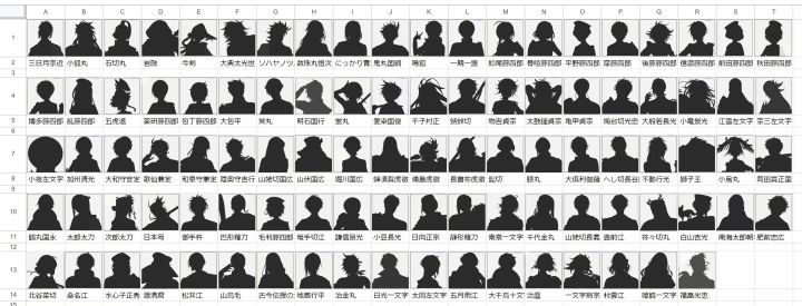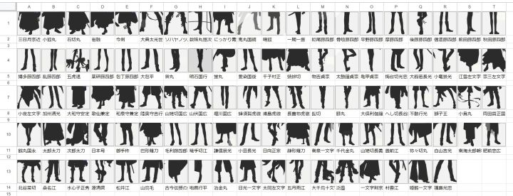 恭喜刀剑乱舞开服九年第一次拥有情人节活动(鼓掌编辑:附上从朋友那顺来的剪影对照表,希望能帮到同事们。