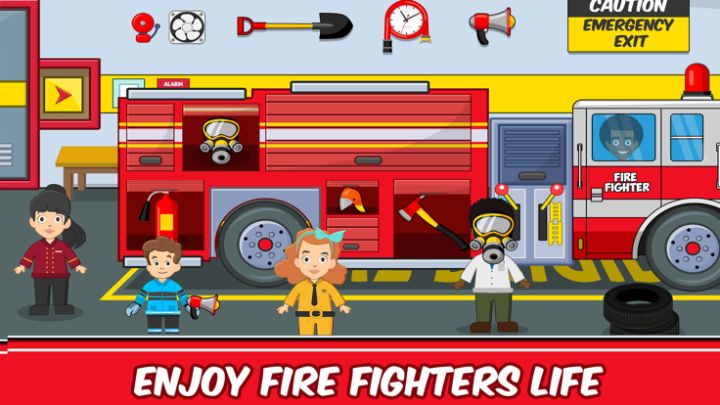 假装扮演消防救援人员,成为我镇的英雄。首先给你的角色穿上防护装备,然后进入控制室,在那里你会接到紧急电话,然后驾驶救火车、直升机或救护车到达你的任务!并喷火,扑灭燃烧的火焰,拯救生命!