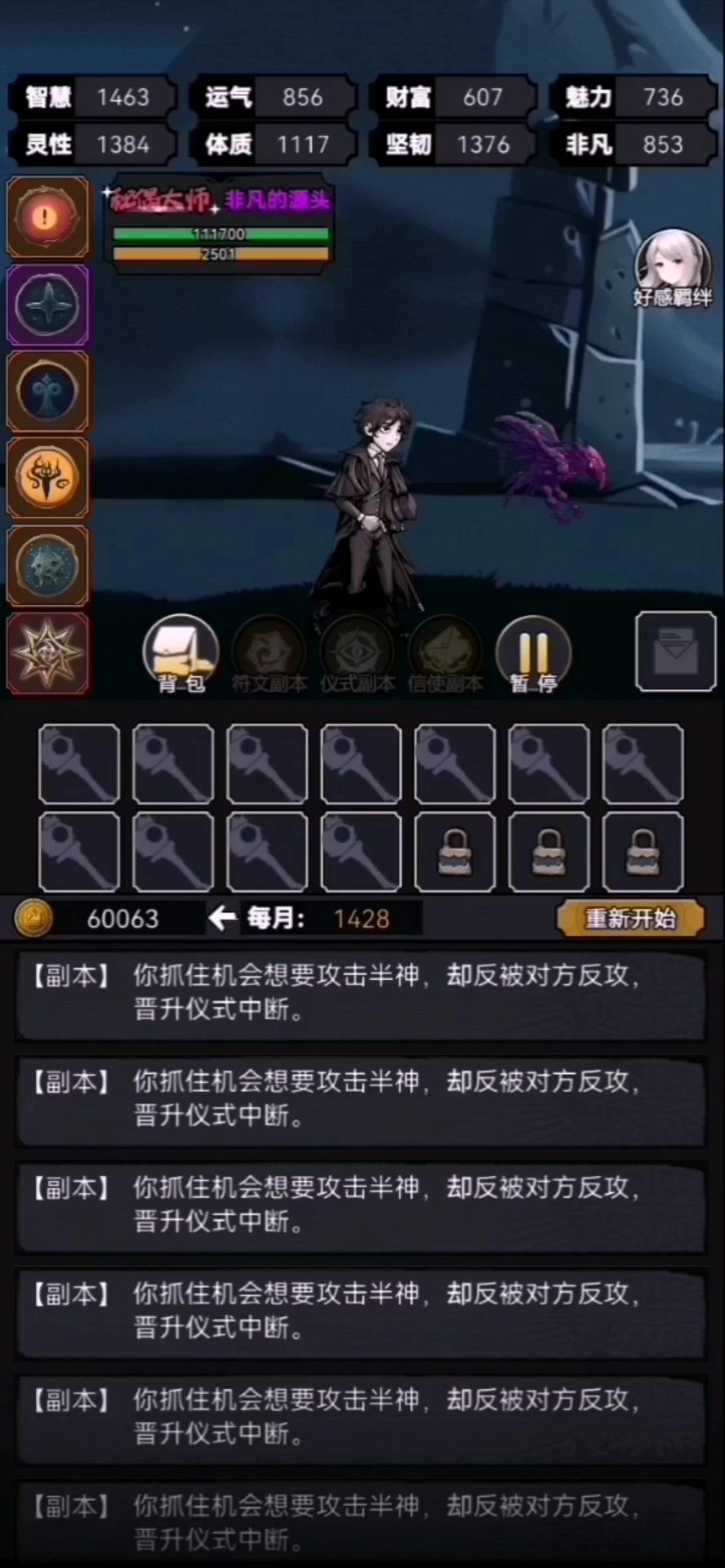 进阶选一击必杀运气不够就一直无限循环了
