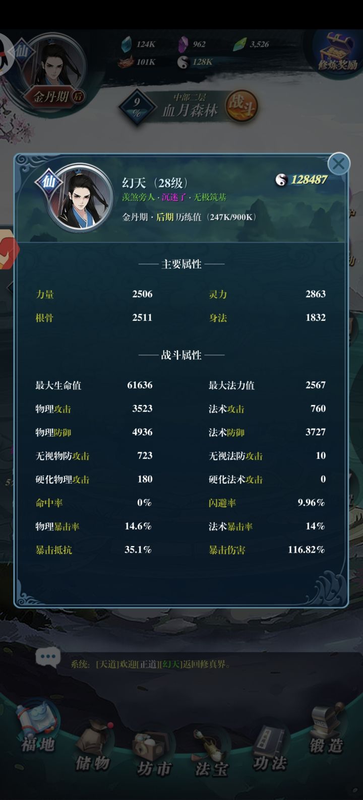 游戏开局仙魔随便选 进入游戏领取成就 记得佩戴 可以佩戴三个 开始进地图刷图。开局先不管属性 蓝紫装全上 凑齐六件紫装有成就 。然后从凝气后期开始注意留装备。装备战力评定很坑不用信,前期属性加成比较低,且输出比较靠技能。建议优先物抗魔抗减cd生命。渡劫优先推荐39,四象。虽然可能会卡。但是上限高(极限筑基中就可以开第二灵根)凝气巅峰四象需要天时地利人和(装备技能灵根)实在过不了可以选择39 影响不