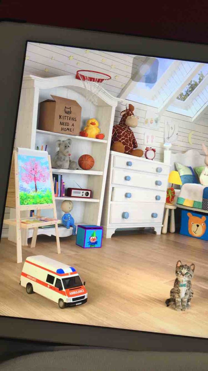 在pad上玩,下载速度很慢,大概放了十来分钟才下好_(:з)∠)_游戏建模都很棒,模拟撸猫很喜欢(= ̄ω ̄=)玩的就是在房间里和猫咪互动的小游戏,捉迷藏跳高抓玩具啥的,用来挣小鱼饼干喂猫猫。以及还可以用猫爪在画板上画画…于是顺手撸了一幅【等等我到底在玩什么…
