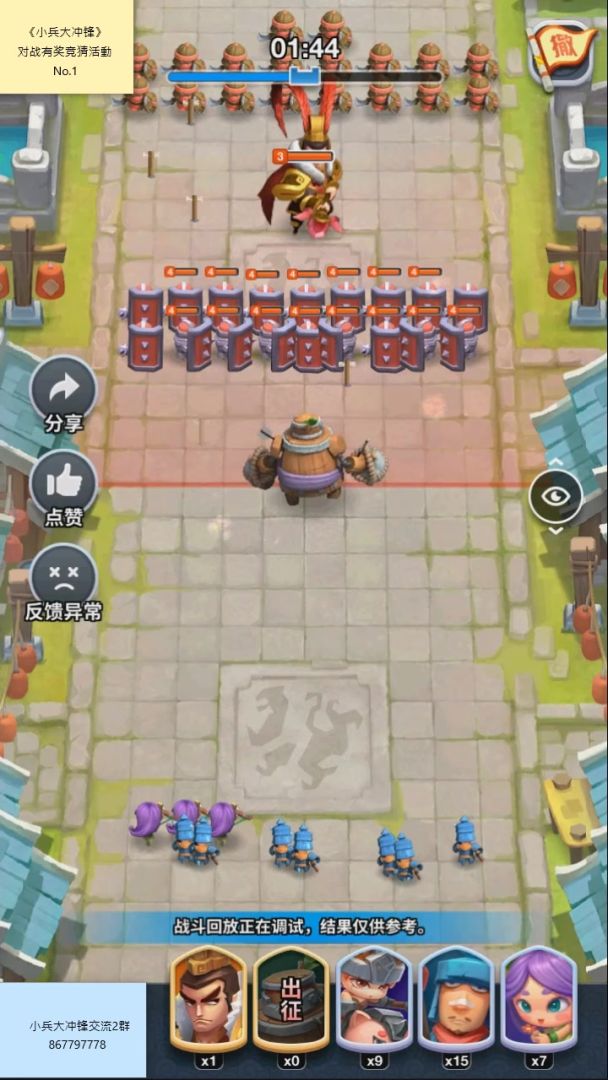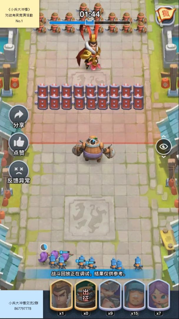 【穆桂英极限挑战赛】——菜鸟一个内容跟随:区服:3区玩家ID:B5K3N使用阵容:关羽(8级)、韩信(7级)、龙骧军(4级)、火铳兵(8级)、大盾兵(8级)使用装备:石龙符、石鹰符