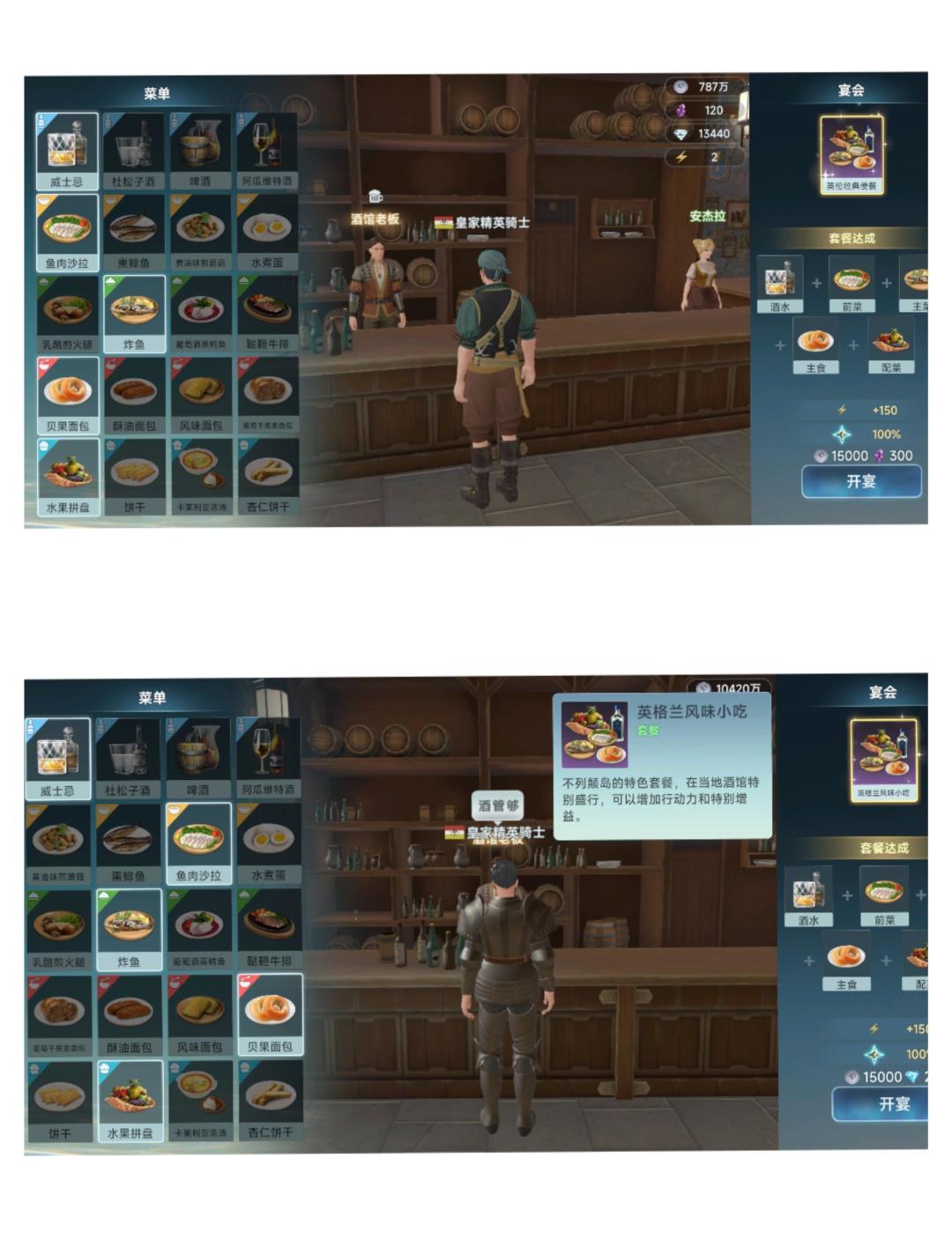 1.英国🇬🇧,酒吧女安吉拉500好感送英伦经典便餐,后续点套餐还能出英格兰风味小吃。 2.亚历山大休息处🇪🇬,点对套餐就免费🆓给突尼斯炖烤精选[表情_开心],并与👇🏻共享。 3.突尼斯🇹🇷,酒吧女舍哲尔好感够了送:突尼斯鲜味饮,挑战非洲料理书📖。 4.热 那 亚🇮🇹,老板处喝酒🍺够一定次数,自动出套餐:哥伦布的乡味。 5.斯德哥尔摩🇸🇪,点餐42343顺序将解锁套餐:舌尖上的北欧。 6.阿姆斯特丹