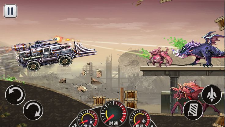 选择进入游戏,发动火力赛车引擎冲锋,躲避前方变异僵尸的攻击的同时,还要摧毁前方所有阻挡你前进的障碍包括无人区上破损的建筑物,我们的目的只有一个,就是到达终点!失败了也没有关系...