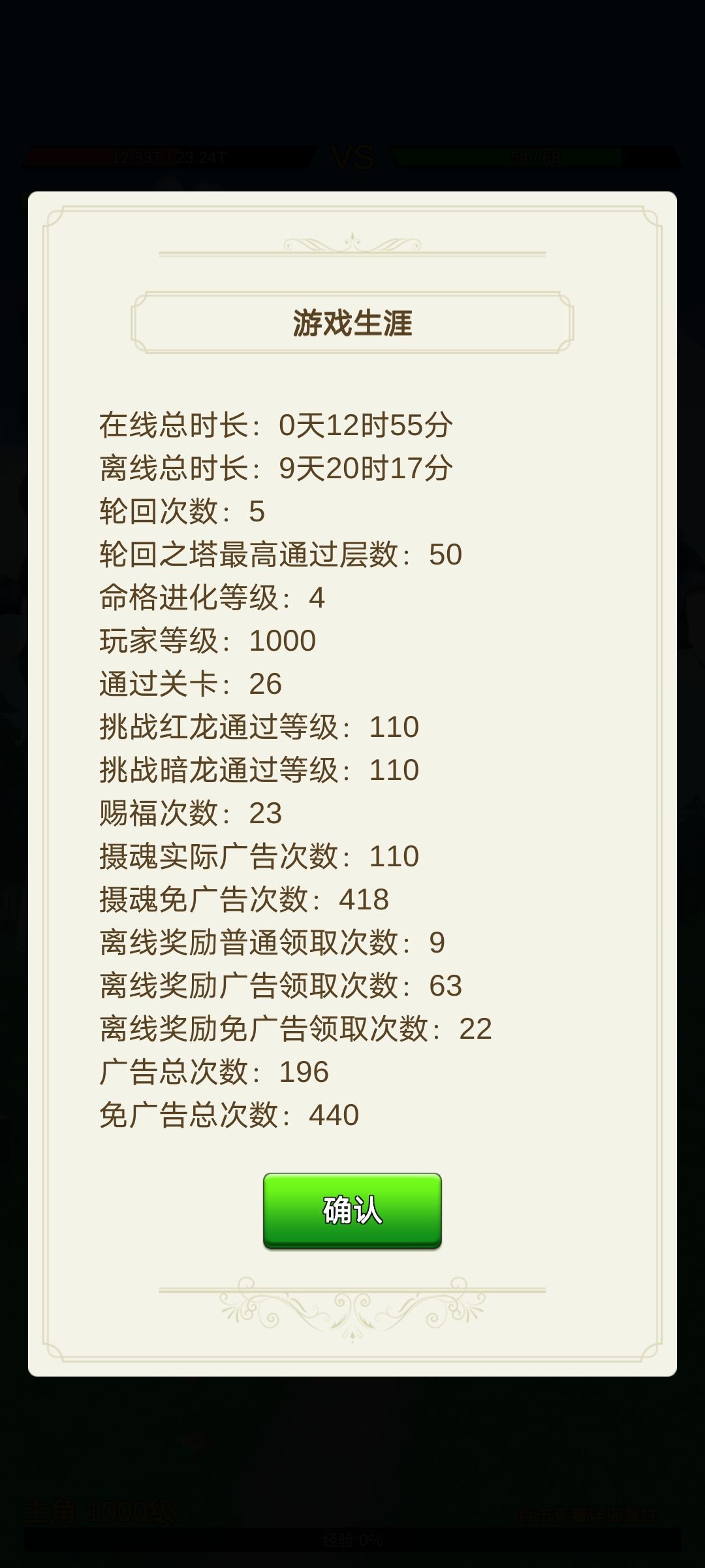 上线先搞一波赐福广告,一天看两次就行,一次10小时,可以自动攻击,还有死亡立即复活,游戏机制就是不停被打死,死后会提升攻击力,摄魂每天10次广告,每次广告后有两次免费的感谢信(感谢信标题点击30次可以获得10%经验加成),广告冷却时间20秒,没次可以增加30次,看够10次后有20次免费的无冷却的摄魂,摄魂可以使生命上限减半,每分钟消耗1次,可以更快的死亡提升攻击力。左上角有红龙和黑龙挑战,没有神器