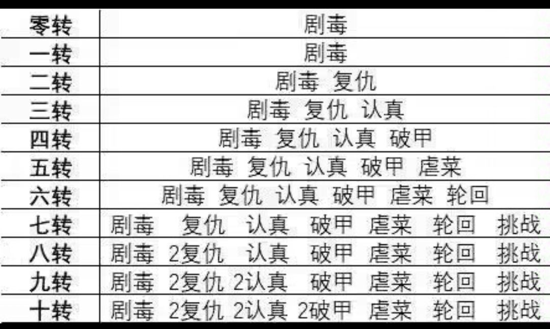 玩了一个星期了,转了一百多轮,从一开始一分钟转3次到现在3,4小时转一次,这游戏的后期核心就是洗天赋,到了一百轮以后很多人可能挂一天都发现打不动了,所以天赋标准很重要。 我的天赋安排就是一剧毒,一破甲,一轮回,两认真,两复仇洗满不动,剩下三个离线挂机就洗成两虐菜,一复仇。 刷红龙就洗成一个红龙,两个任意伤害,刷轮回就洗多一个轮回,两个任意伤害。