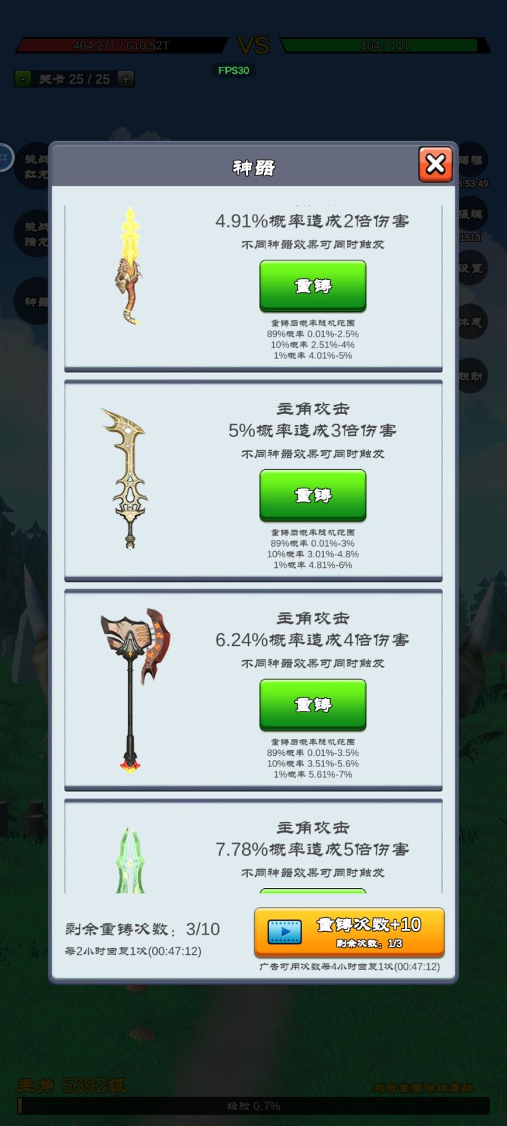 玩了一会,游戏挺不错的,下面介绍一下本游戏的玩法步骤: 1、进去游戏第一时间把自动点击激活。 2、自动点击激活后立刻把自动点击下面的那个“摄魂”也观看一次有效广告拿到摄魂点,这很重要,关系到你的发展速度。 3、攻击到达90以上就可以尝试打红龙了,通过后立刻打暗龙。 4、通过了双龙以后把免广告开启(6次有效广告就能解锁当天免广告)然后把命格试用点开,里面的词条看个人喜好去保留(个人建议用“剧毒”),可以一直用到你开启命格。 具体玩法就是以上这些,另外希望作者把那些必须跳转广告内容试玩和总是要点取消福利的广告去除,不然你这类游戏估计没人玩,而且还会被蛐蛐,好了,大概就讲到这吧,我继续玩游戏去了