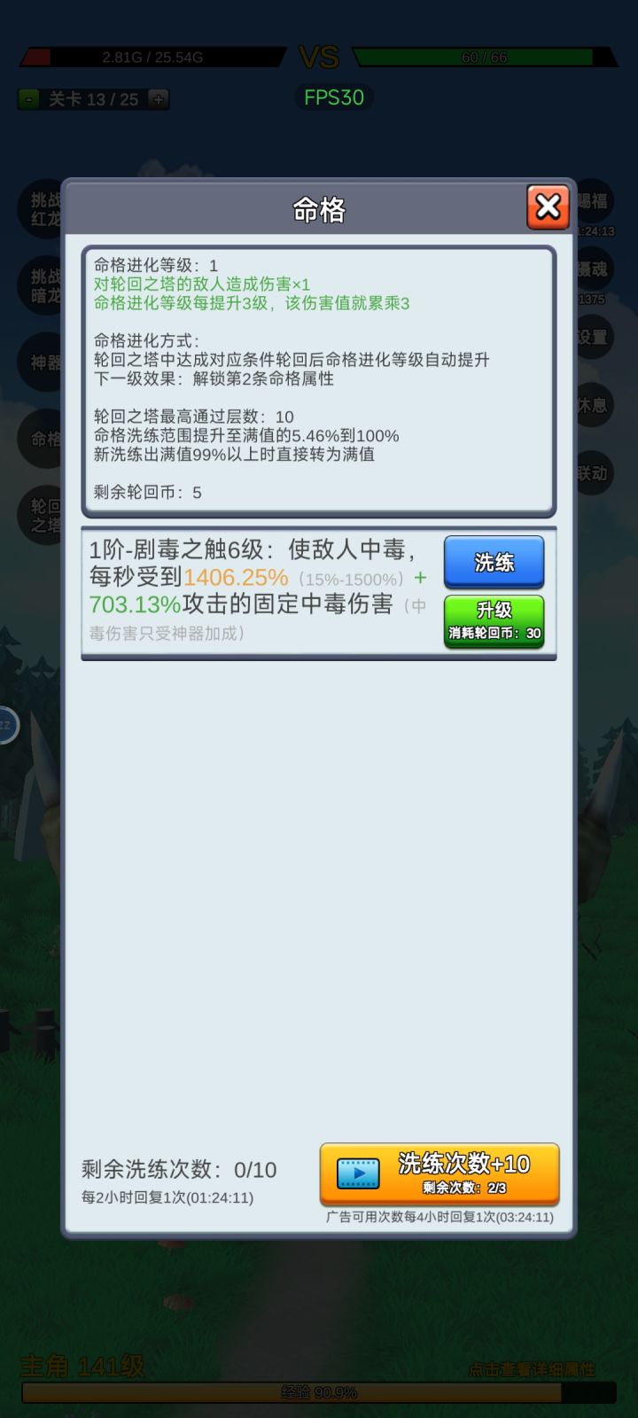 玩了一会,游戏挺不错的,下面介绍一下本游戏的玩法步骤: 1、进去游戏第一时间把自动点击激活。 2、自动点击激活后立刻把自动点击下面的那个“摄魂”也观看一次有效广告拿到摄魂点,这很重要,关系到你的发展速度。 3、攻击到达90以上就可以尝试打红龙了,通过后立刻打暗龙。 4、通过了双龙以后把免广告开启(6次有效广告就能解锁当天免广告)然后把命格试用点开,里面的词条看个人喜好去保留(个人建议用“剧毒”),可以一直用到你开启命格。 具体玩法就是以上这些,另外希望作者把那些必须跳转广告内容试玩和总是要点取消福利的广告去除,不然你这类游戏估计没人玩,而且还会被蛐蛐,好了,大概就讲到这吧,我继续玩游戏去了