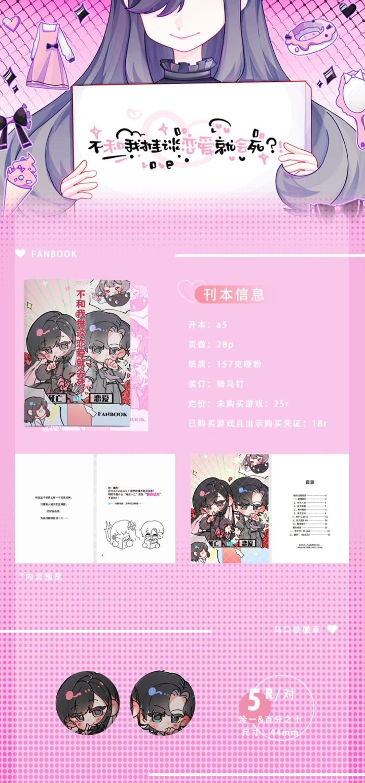 我推FANOOK将于广州CPSP场贩!时间:2024.4.4-2024.4.5摊位:玖C18售价:25(未购买作品)18(出示购买作品凭证)特别注意:因为打印源文件错误,《不和我推谈恋爱就会死?!FANKOOK》场贩为瑕疵本(含极少错别字),我们将为购买瑕疵本的顾客免费赠送泠一和百分之十的一对吧唧。#不和我推谈恋爱就会死?!
