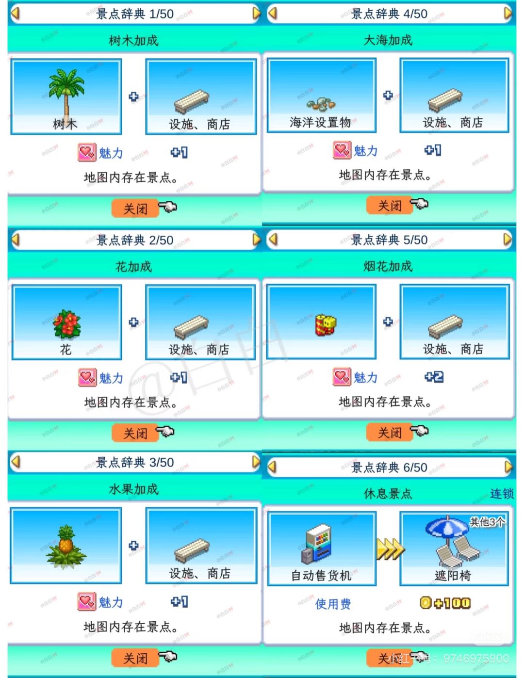 时隔多年我又玩了开罗游戏,攻略大家写的有很多,我就浅浅搬运一下。。。 注意16年4月结算。 1、关于布局 布局相信大多数人使用的都是水饺的图,我也是!!! 然后玩的时候参考的是另一位博主的修改图。五号岛后面还有一个更全面的图。 首先一号岛先简单建造一下,可以看上图,等二号岛出了先采用前期布局图。商店购买魅力种子不要随便使用,全部给到土特产店(30+)、水果店(40+)、鲜花拱门(40+),为二号图