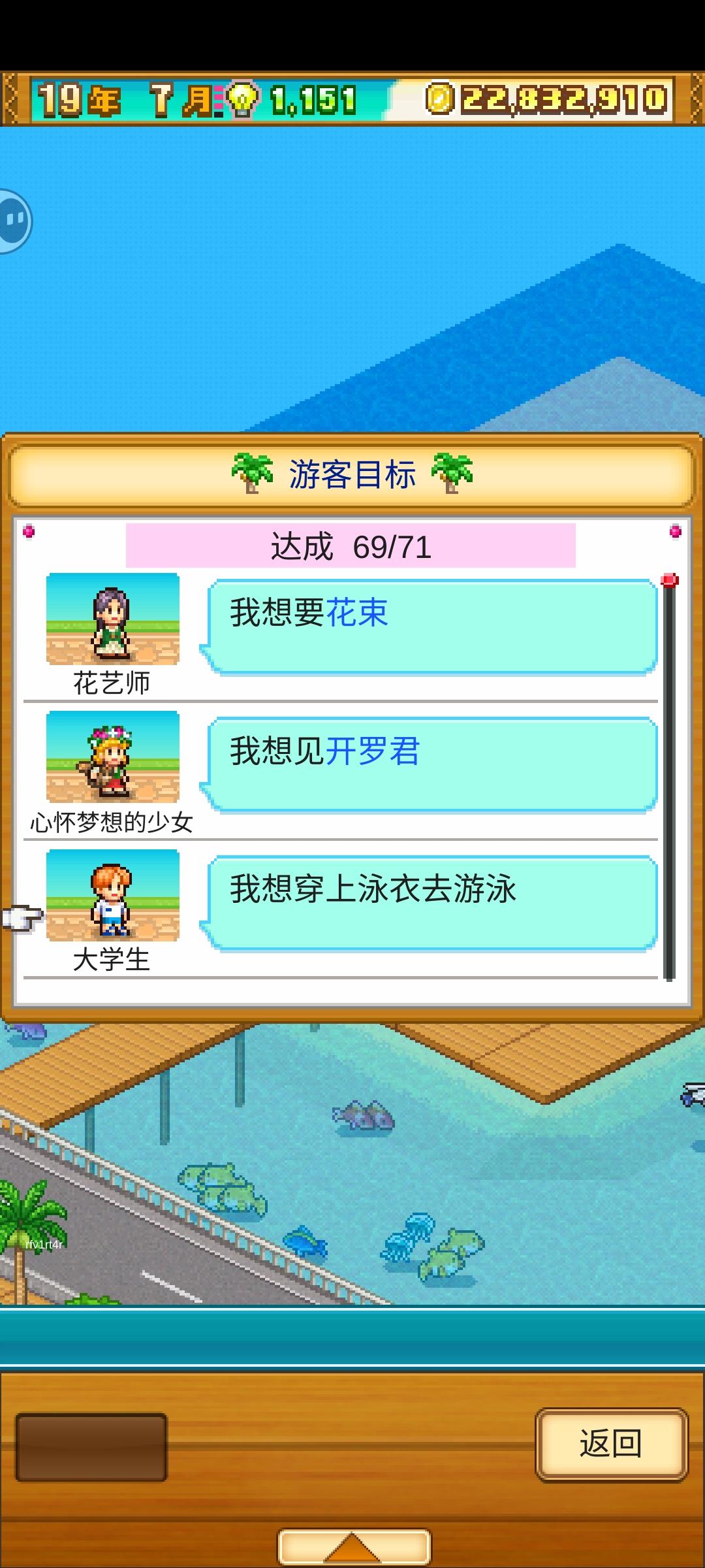 肝了一个下午,终于玩到第五年啦,已经不怎么为钱发愁了个人觉得酒店赚钱能力前期不是很好,又贵不用开那么多,多开别墅,然后堆相性建筑,有钱就升级别墅,提高单价。购物街美食街一定要建成,放在港口靠近的地方。环海公路时一定要有的,客人可以开小车车,节省通行时间。我觉得满足这三点赚钱就挺容易啦~继续肝~开罗游戏还是这么让人上头#一天一个单机游戏分享#游戏讨论#游戏安利