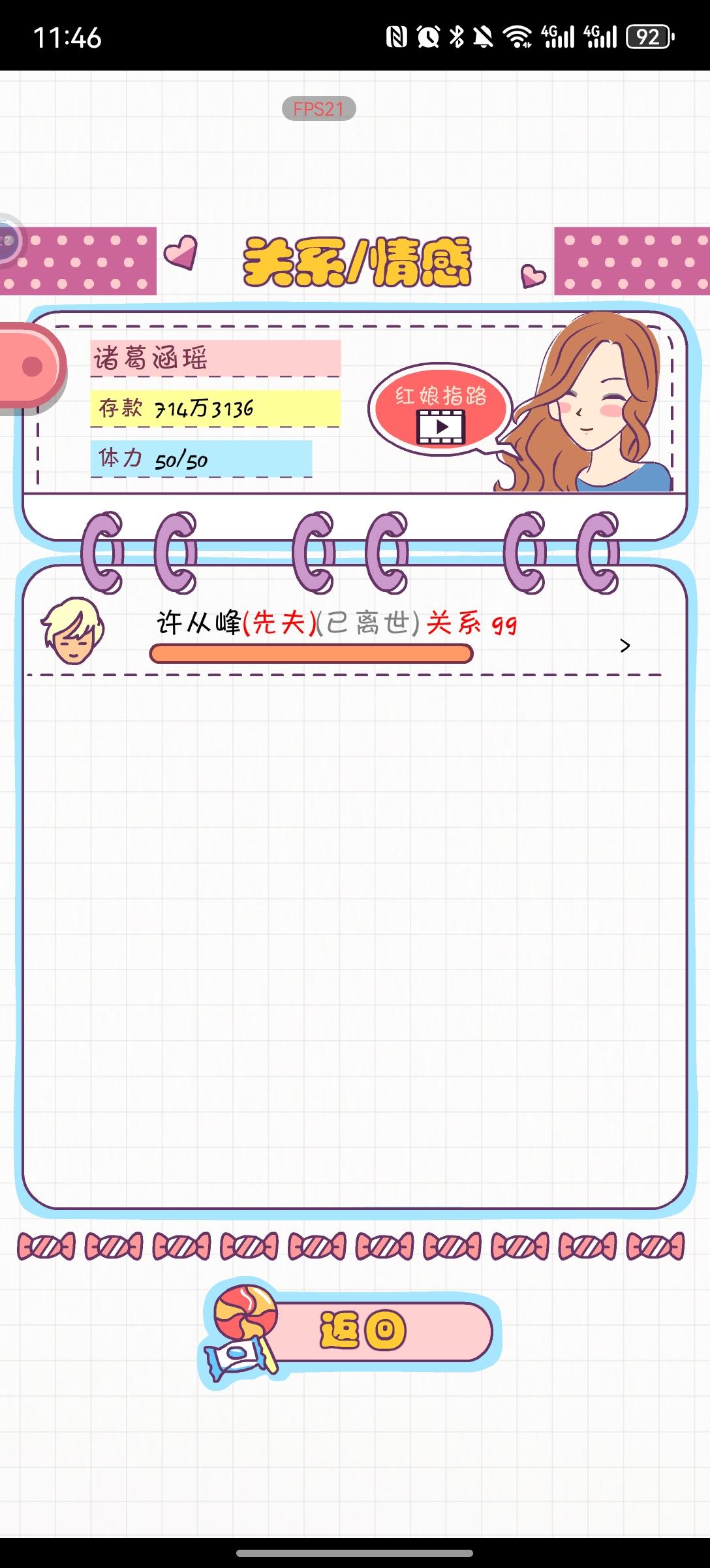 攻略老许最难的就是人气值 因为会增长越来越慢 只能尽早开始直播19~23岁:1.每月要零花钱 不升父母关系值 后期直播会被爆黑料 但影响不大 2.室友分手伤心选择不安慰 毕业租房时室友邀请看电视剧也拒绝 直接拒绝结识两姐妹 3. 智商刷到100触发成就并获得奖学金 情商40就够 工作后会增长 口才适当刷一点 表演能力要尽可能多 额外的体力值学习教师资格证 毕业直接选择教育 注意心情不能低于40