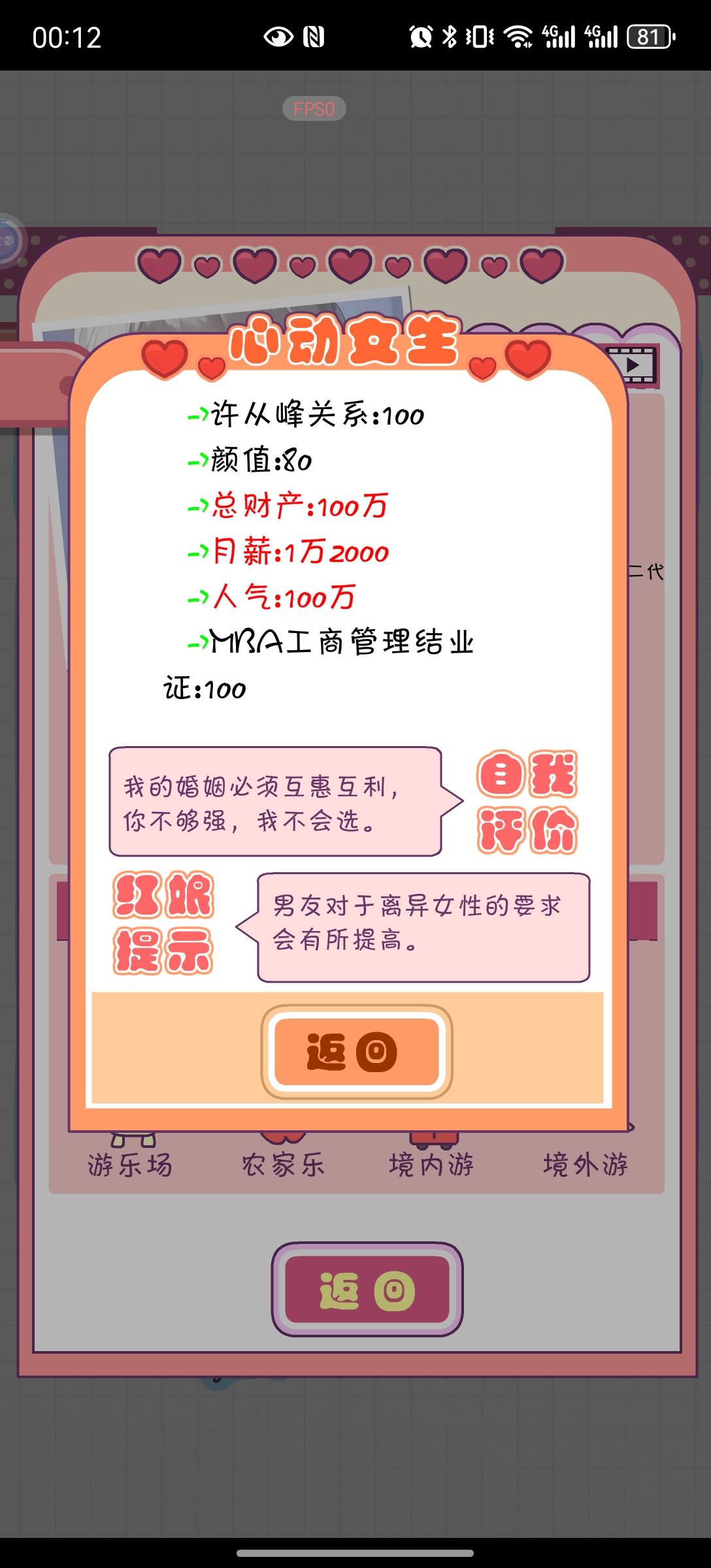 19岁第1个月~22岁第12个月:1.不做任何兼职,不刷婷婷的好感,不要男人(学长和高中同学)2.先把工作选定,我选择的是培训机构老师(因为工资是最高的)3.再确定想做的兼职,我选了商场导购,网文写作,漫画投稿,网络直播,心理咨询4.业余培训在这个阶段只做教师资格证5.先把智力与情商各自刷到40,然后把绘画与口才各自刷到20,再次把表演刷满,最后剩余时间刷情商(绘画可刷可不刷)6.这