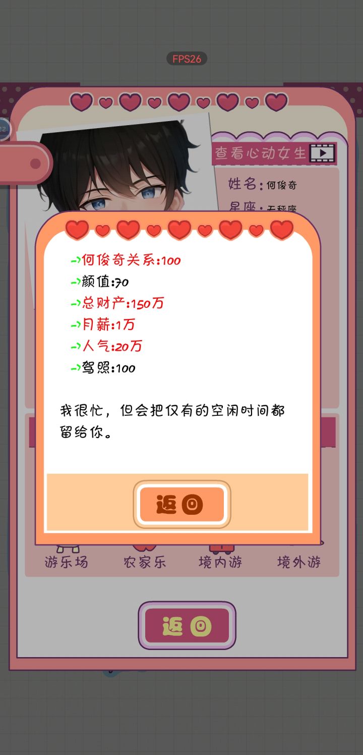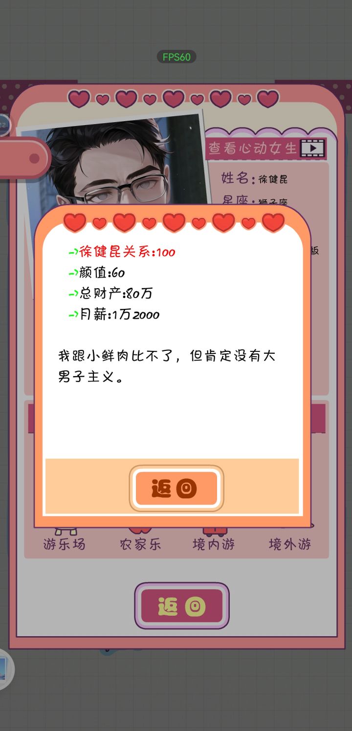 几个角色基本都结了,高中同学,闺蜜那些没点认识,酒吧也没认识,以免后面直播因顾不过来爆黑料,其实这样挺省事的。确定自己想攻略的对象,其他数据基本就别刷。大学每月都拿零花钱,先把智商情商刷到100[尽量越高越好,后面不会被辞退,能有高额打游戏退休金],我选的是培训老师[退休金每月有6060],然后再刷口才[40足矣],再刷表演[尽量往100以上刷]。证书顺序我是驾照-教师资格证-mba-心理咨