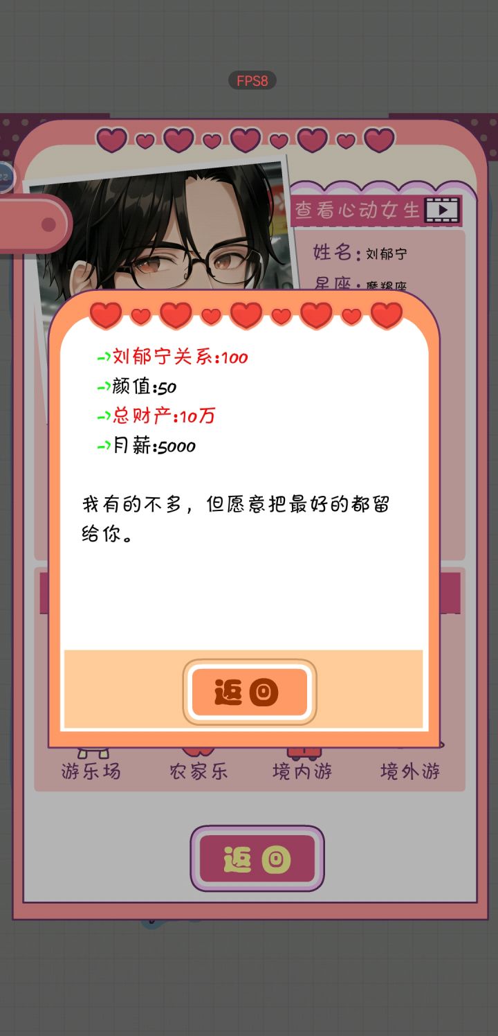 第一世:除了苏婷婷别的人都不搭理,也不陪父母(但是每个月零花钱得要),男人和另一个姐妹都不要,因为第二世会清空好感和礼物,所以第一世只认识一个苏婷婷就够了,省体力先去把表演能力拉满,口才拉到两百够用就行,主要表演没法在其他地方刷,剩下的体力在毕业前把情商刷到50,智商刷到60,毕业的时候花6000出去玩儿+10情商,然后可以去那个贸易公司工作。毕业前把绘画至少刷到20,方便毕业后做漫画投稿兼职。