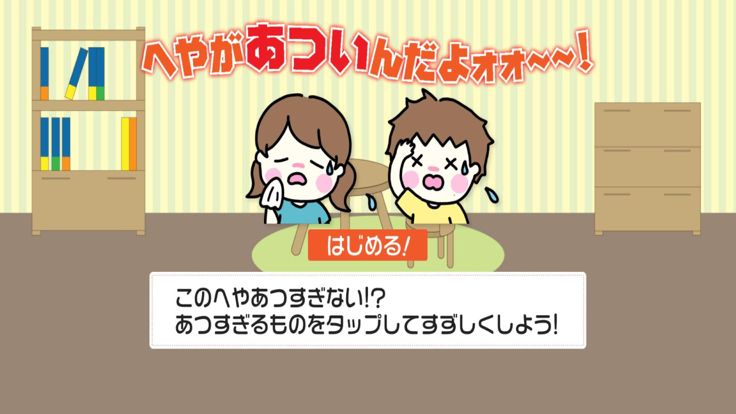 部屋が熱すぎる…部屋が寒すぎる…、といった苦情に対して、原因のものをタップするだけの簡単ゲーム!