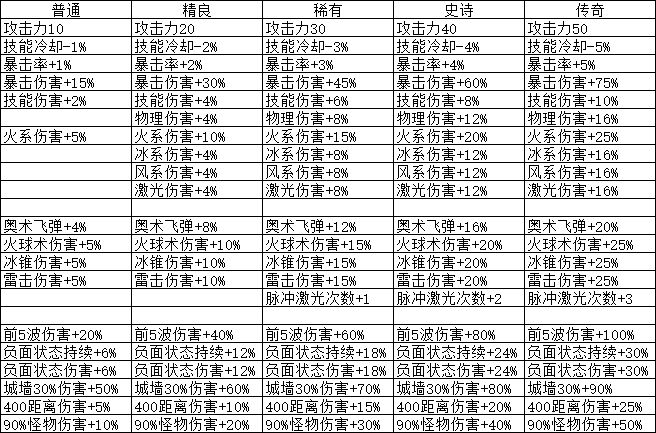 后续宝石图鉴,技能树和攻略将不再在Tap更新. 获取最新更新请移步Q群:436193580 或者关注抖音:ARX572(每天下午14-18点,晚上21-24点直播) 10月17日游戏更新宝石: ☆新增:火球术命中怪物后会弹射出一个无强化的火球; ☆对于血量高于70%怪物伤害+X宝石整体加强; ☆奥弹穿透+1,伤害+X宝石整体加强; ☆城墙每损失20%→15%血量就施放X根滚木(未更新在图表中); ☆