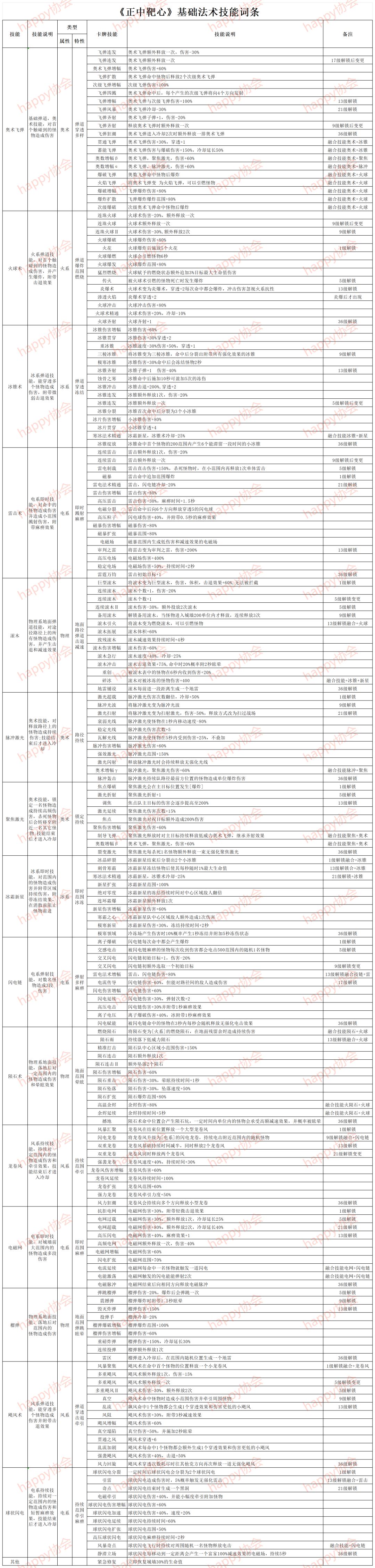《正中靶心》-基础技能词条大全
