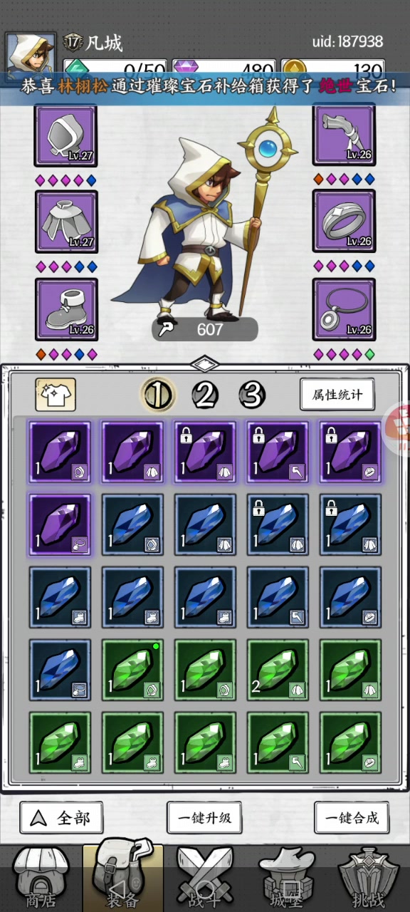 就充了个特权月卡,宝石这运气感觉还可以,拿技能非气冲天了,都是没用的技能,攻击力也低,卡在24关,咋办啊