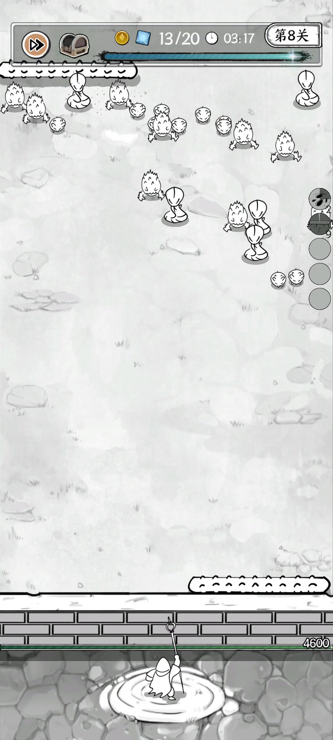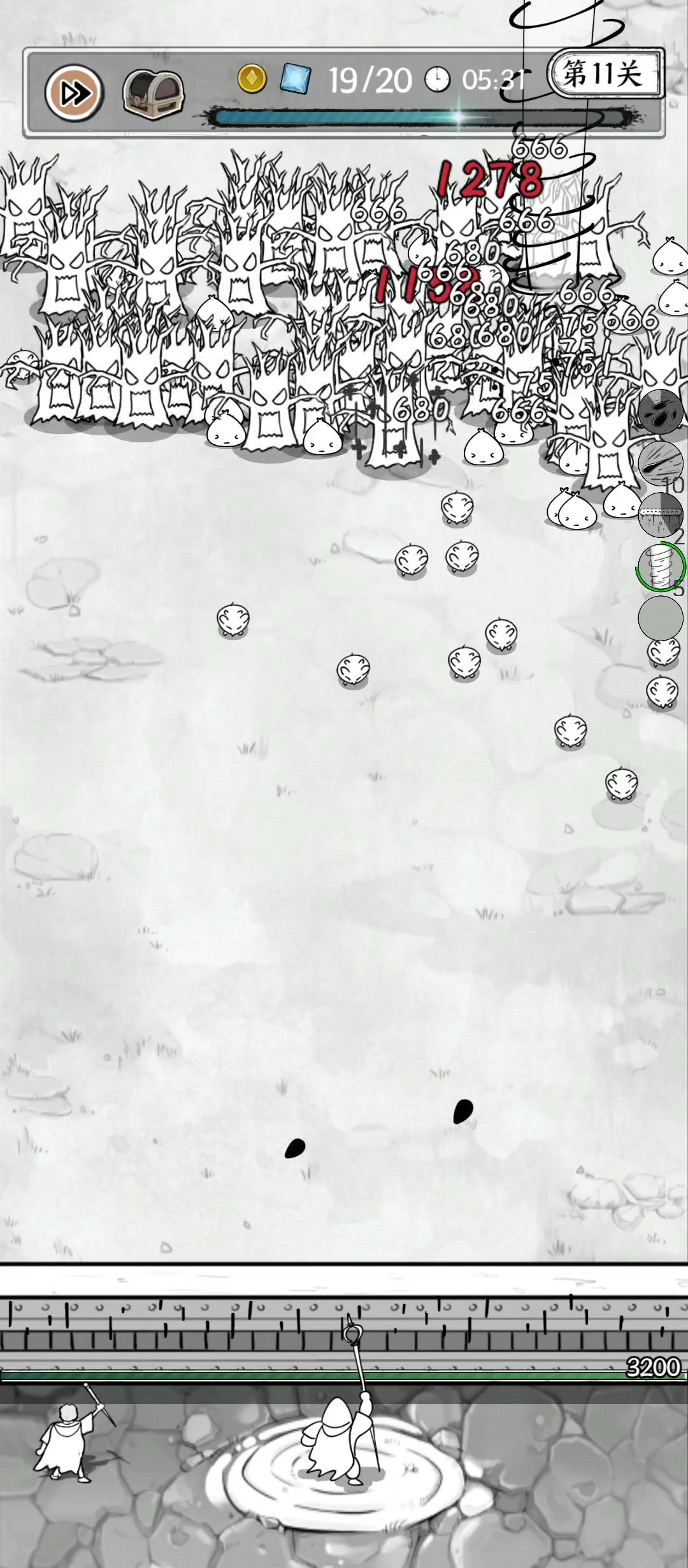 今天连过4关,然后直接卡在22。伤害有点低,第二波怪直接挠墙,运气好刷出好用的技能勉强打完第一个boss。真滴孬。(不得不说龙卷风yyds,随便点几下伤害都是最高的)