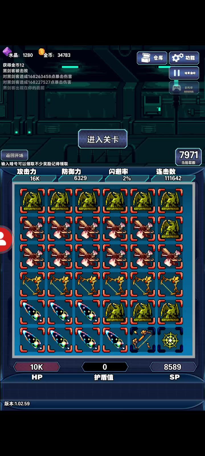 要求:闪避上限120+,超级诸葛弩6+。 把箭全放仓库,然后开始游戏,闪避掉到100以下时,把箭拿出去来,把BOS秒了,到下关继续刷。刷到你满意为止
