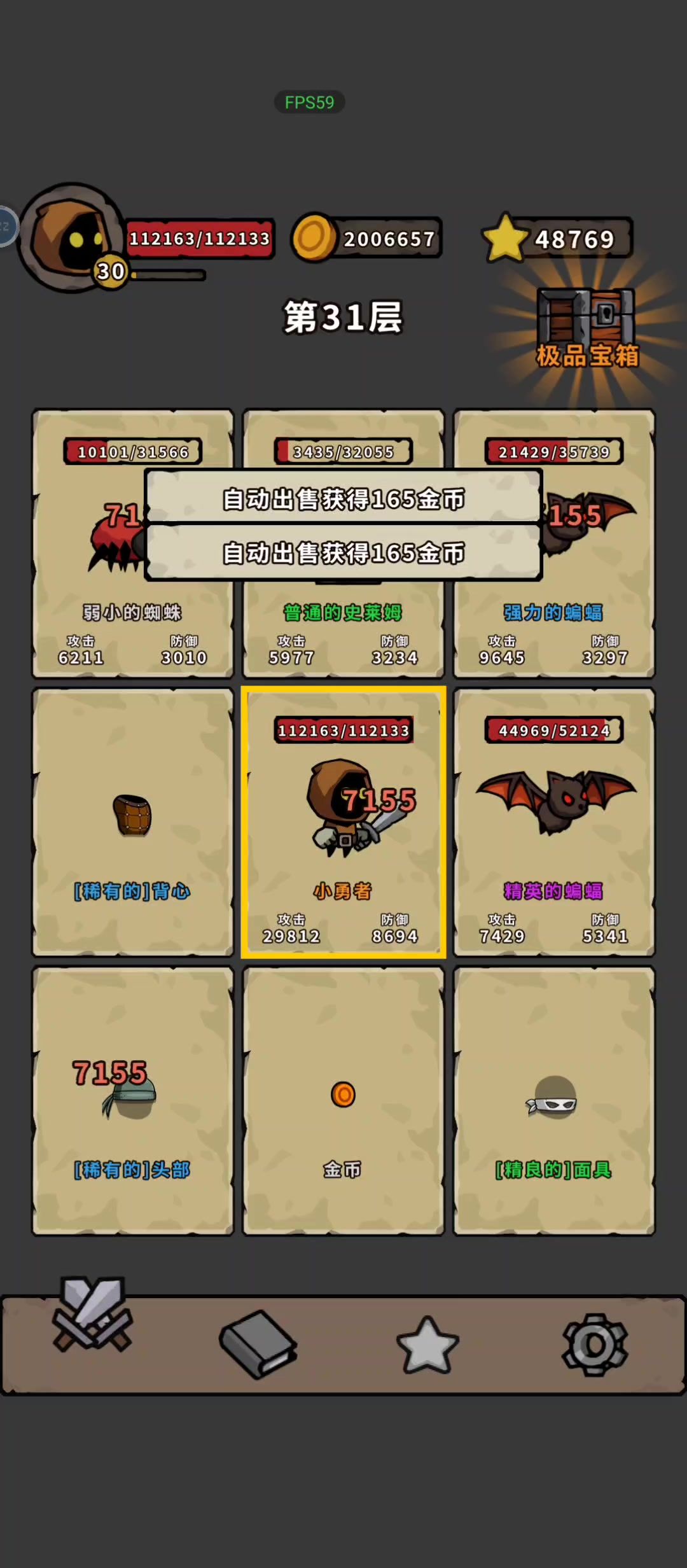 这游戏刚开始玩还挺上头的。然后就看了论坛。各种bug哈哈。这游戏就三点,前期刷神罚和战魂和荣耀。刷完就毕业了。然后就是各种挂机。40级红装后期+11都需要几万。可想而知100层后面真伤不起。挂一晚上也才百来万。层数越高金币多才是啊。这金币真的太少了,银行和星星那个随便升级就满了。没多大意思。然后真诚说一句这游戏凉了。真该。模拟器都算不上。也算是良心了。