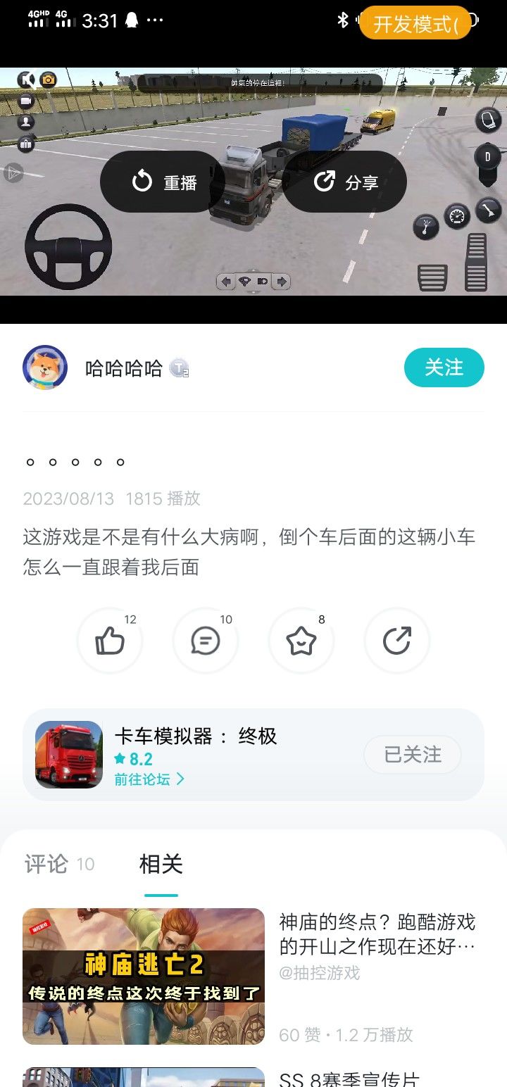 这游戏是不是有什么大病啊,倒个车后面的这辆小车怎么一直跟着我后面