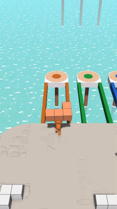 Collect blocks from the stage and bring them to your bridge to complete it fully & be able to walk across to the next stage!