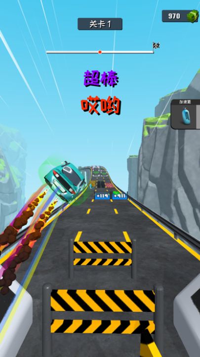 选择蓝色通道穿越,你的车速将快到飞起!随着车速提升,你的车型也将不断升级。