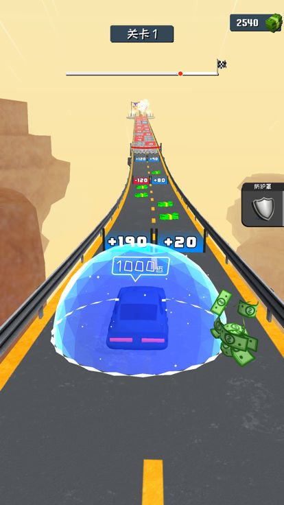 你可在赛车上方查看实时车速,在右上角查看奖金收益,在屏幕顶端查看赛道行驶进程。