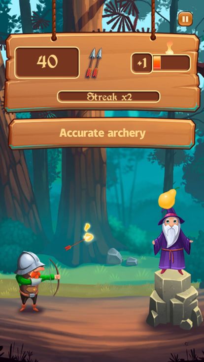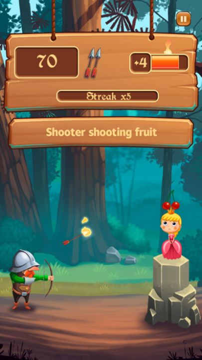 游戏中,你正在参加一项射箭比赛,作为一名非常出色的神射手,尝试射中人们头顶的水果,记住千万不要伤害到无辜的人们!