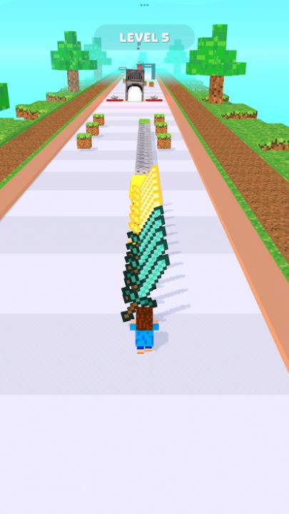 - Collect blocks and craft them into swords.