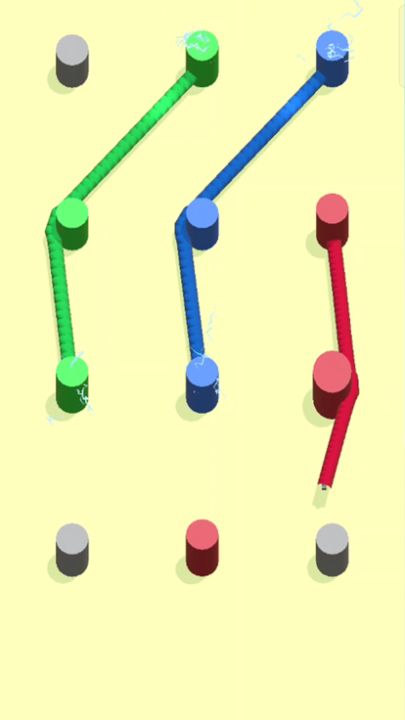 Drag and connect the rope from one pin to the other of the same color. If you pass over a different color rope, it may electrify & spoil your rope! Be careful and finish the level without cutting any ropes on your way!
