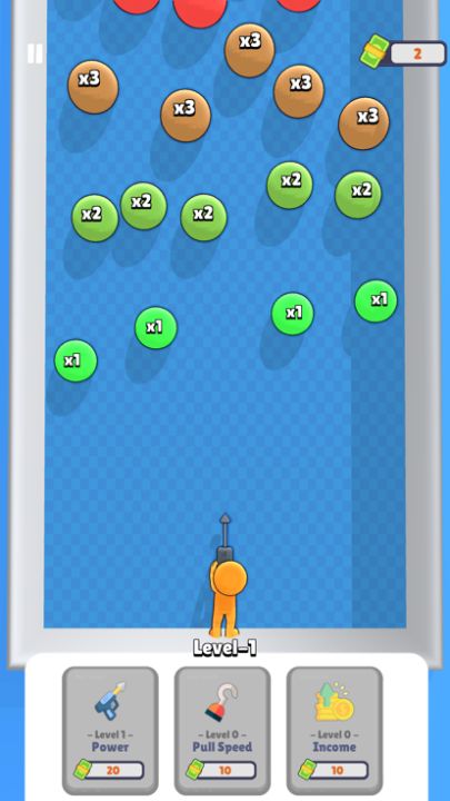 Catch the balls with the harpoon, earn money, catch more balls using the increments, earn more money and win the game!